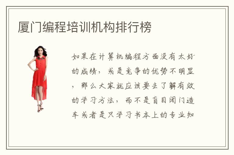 如果在計(jì)算機(jī)編程方面沒有太好的成績,或是競爭的優(yōu)勢不明顯,那么大家就應(yīng)該要去了解有效的學(xué)習(xí)方法,而不是盲目閉門造車或者是只學(xué)習(xí)書本上的專業(yè)知識。當(dāng)然也可以多參考廈門編程培訓(xùn)機(jī)構(gòu)排行榜,找到技術(shù)水平更高、排名的情況更加優(yōu)越的培訓(xùn)機(jī)構(gòu),改善編程培訓(xùn)機(jī)構(gòu)能力,達(dá)到更好的計(jì)算機(jī)編程專業(yè)提升效果。編程培訓(xùn)機(jī)構(gòu)有壓力嗎,有些學(xué)生可能感覺到周圍的同學(xué)都比較厲害,但是自己一直都處于入門級的狀態(tài),根本就沒有良好的學(xué)習(xí)進(jìn)度,更不要說熟練掌握各種計(jì)算機(jī)編程的內(nèi)容。大家其實(shí)是可以和周圍的學(xué)生多交流,也能將自己對計(jì)算機(jī)編程的看法表達(dá)出來,一方面可以鞏固這些知識點(diǎn),又可以凸顯出自己的深入思考,其實(shí)對計(jì)算機(jī)編程的學(xué)習(xí)會有非常好的幫助。