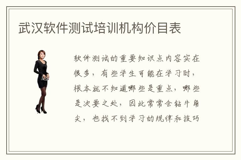 軟件測試的重要知識點(diǎn)內(nèi)容實(shí)在很多,有些學(xué)生可能在學(xué)習(xí)時,根本就不知道哪些是重點(diǎn),哪些是次要之處,因此常常會鉆牛角尖,也找不到學(xué)習(xí)的規(guī)律和技巧,很難收獲學(xué)習(xí)成果。大家如果對這些專業(yè)有非常大的盲點(diǎn),或者是不足之處,可以考慮軟件測試培訓(xùn)機(jī)構(gòu)。武漢軟件測試培訓(xùn)機(jī)構(gòu)價目表,也許是在2300到12,000元,但是軟件測試培訓(xùn)教學(xué)任務(wù)不一樣,因此有些情況下的收費(fèi)標(biāo)準(zhǔn)是有差異的。如果更高端的學(xué)習(xí)方案,那么學(xué)習(xí)時間更長,要求的老師也應(yīng)該更專業(yè),所以報(bào)名費(fèi)用標(biāo)準(zhǔn)會更高。軟件測試培訓(xùn)內(nèi)容多不多,軟件測試的課程設(shè)計(jì)內(nèi)容是比較全面的,有高階段的學(xué)習(xí)和低階段的學(xué)習(xí),也有多種教學(xué)的方法,如果學(xué)生可以關(guān)注這些內(nèi)容,那么在學(xué)習(xí)的過程中,老師會制定更加全面的輔導(dǎo)方式,優(yōu)化技術(shù)的培訓(xùn)課程內(nèi)容,讓學(xué)生更加懂得專業(yè)的輔導(dǎo)方式。