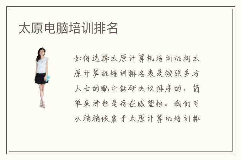 如何選擇太原計(jì)算機(jī)培訓(xùn)計(jì)算機(jī)培訓(xùn)機(jī)構(gòu)太原計(jì)算機(jī)培訓(xùn)排名表是按照多方人士的配合鉆研決議排序的,簡(jiǎn)單來(lái)講也是存在威望性。我們可以稍稍依靠于太原計(jì)算機(jī)培訓(xùn)排名停止培訓(xùn)機(jī)構(gòu)的挑選。固然,另外一程度,我們也需要連系本身的現(xiàn)實(shí)情況,停止太原計(jì)算機(jī)培訓(xùn)學(xué)校的選擇。太原地域計(jì)算機(jī)培訓(xùn)學(xué)??诒容^如何停止需要綜關(guān)太原計(jì)算機(jī)培訓(xùn)學(xué)校的講授情況和辦學(xué)色采等各項(xiàng)目標(biāo)。太原計(jì)算機(jī)培訓(xùn)排名推薦電腦學(xué)校