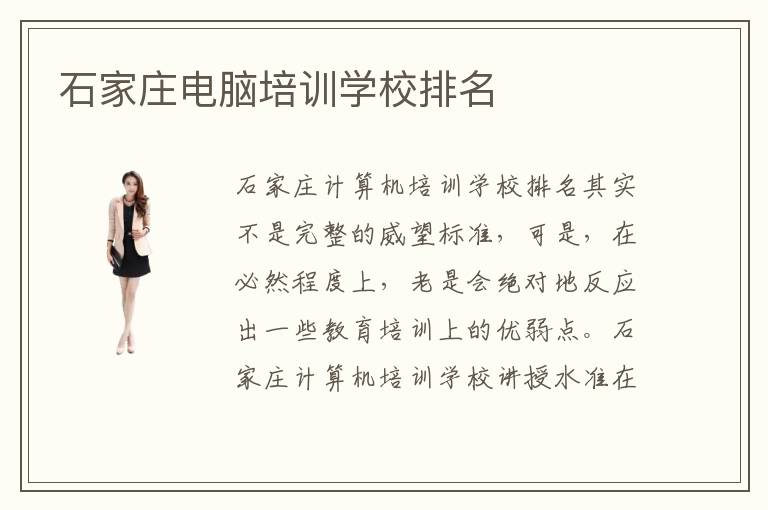 石家莊計(jì)算機(jī)培訓(xùn)計(jì)算機(jī)培訓(xùn)學(xué)校排名其實(shí)不是完整的威望標(biāo)準(zhǔn),可是,在必然程度上,老是會(huì)絕對(duì)地反應(yīng)出一些教育培訓(xùn)上的優(yōu)弱點(diǎn)。石家莊計(jì)算機(jī)培訓(xùn)學(xué)校講授水準(zhǔn)在國(guó)內(nèi)排名也比較靠前,石家莊計(jì)算機(jī)培訓(xùn)學(xué)校招納了很多IT電腦方面的專(zhuān)業(yè)教員,講授經(jīng)歷豐碩,講授水平優(yōu)良,盡力把講堂打形成興趣性強(qiáng)的培訓(xùn)形式。石家莊計(jì)算機(jī)培訓(xùn)學(xué)校學(xué)習(xí)時(shí)間一視同仁,但愿人人在無(wú)限的培訓(xùn)學(xué)習(xí)中學(xué)到更多常識(shí)。石家莊計(jì)算機(jī)培訓(xùn)學(xué)校排名推薦電腦學(xué)校