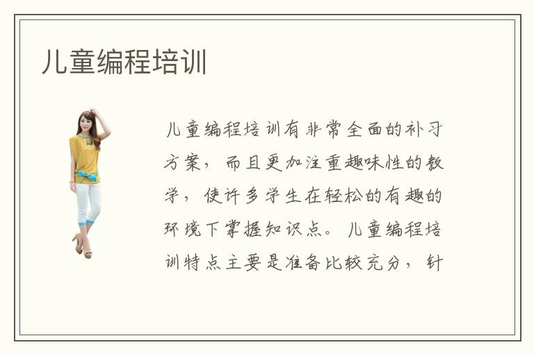 兒童編程培訓(xùn)有非常全面的補(bǔ)習(xí)方案,而且更加注重趣味性的教學(xué),使許多學(xué)生在輕松的有趣的環(huán)境下掌握知識點。兒童編程培訓(xùn)特點主要是準(zhǔn)備比較充分,針對性很強(qiáng),結(jié)合學(xué)生的基礎(chǔ)指導(dǎo),教學(xué)生的基礎(chǔ)很薄弱,才剛剛開始學(xué)習(xí)計算機(jī)編程的內(nèi)容,各方面的課程理解得不夠深入。兒童編程培訓(xùn)要求高嗎,兒童編程培訓(xùn)的要求很嚴(yán)格,因為大家都知道,計算機(jī)編程課程的難度越來越高,如果沒有老師作為嚴(yán)格的輔導(dǎo),教學(xué)質(zhì)量可能會下降,學(xué)生很難在以后的學(xué)習(xí)和成長中取得優(yōu)勢。而專業(yè)的老師會進(jìn)行嚴(yán)格的指導(dǎo)和教學(xué),為學(xué)生做好充分的課程規(guī)劃,每一個階段都會有對應(yīng)性的補(bǔ)習(xí)內(nèi)容,使學(xué)生每個階段都有明確的目標(biāo),準(zhǔn)備更加充足,培訓(xùn)過程中也可以獲得自己的學(xué)習(xí)成果。