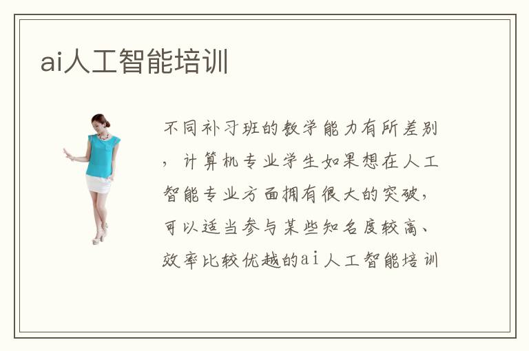 不同補習班的教學能力有所差別,計算機專業(yè)學生如果想在人工智能專業(yè)方面擁有很大的突破,可以適當參與某些知名度較高、效率比較優(yōu)越的ai人工智能培訓課程。ai人工智能培訓容不容易,AI人工智能培訓機構(gòu)課程相對容易,很多學生都能找到適合自己的解題的方法,掌握許多解題思路,從而改善個人的應(yīng)用水準。ai人工智能培訓成績非常優(yōu)秀,老師會滿足不同基礎(chǔ)學生的需要,提供多方位的輔導方案。要是學生覺得老師的水平不高,或者是成績不夠理想,都可以適當更換老師,選擇另外的補習機構(gòu),相信都有很好的效果。另外,在補習的時候,學生不要去依賴于專業(yè)培訓班或者是老師,應(yīng)該要有自己的思考,每個階段都要歸納總結(jié),及時分析,梳理知識結(jié)構(gòu),在學習過程中更有條理。