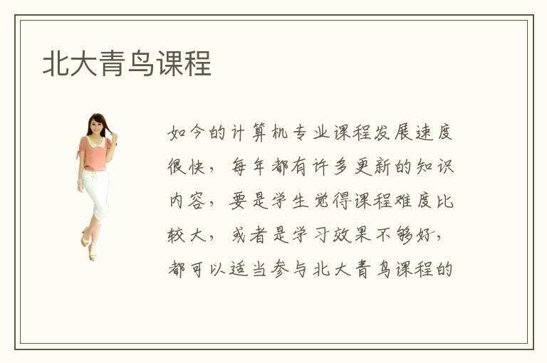 如今的計算機專業(yè)課程發(fā)展速度很快,每年都有許多更新的知識內(nèi)容,要是學生覺得課程難度比較大,或者是學習效果不夠好,都可以適當參與北大青鳥課程的指導。北大青鳥課程作用明顯嗎,北大青鳥課程培訓作用明顯,老師進行細致的教學,分析學生可能存在的疑問和難題,結合嚴格的輔導計劃,使大家擁有更明顯的提高。北大青鳥課程難不難,北大青鳥的教學課程不會太難,因為大家都意識到,如果難度比較高,會影響學生的進度和信心,長時間都遇到難以理解的內(nèi)容,常常會產(chǎn)生一些厭學情緒,不太利于長遠的進步。而北大青島專業(yè)補習班的老師會及時調(diào)整學習的進展,幫助學生設計重要課程,規(guī)劃作業(yè)和任務,在每個階段都有詳細的學習計劃,幫助學生養(yǎng)成良好習慣。