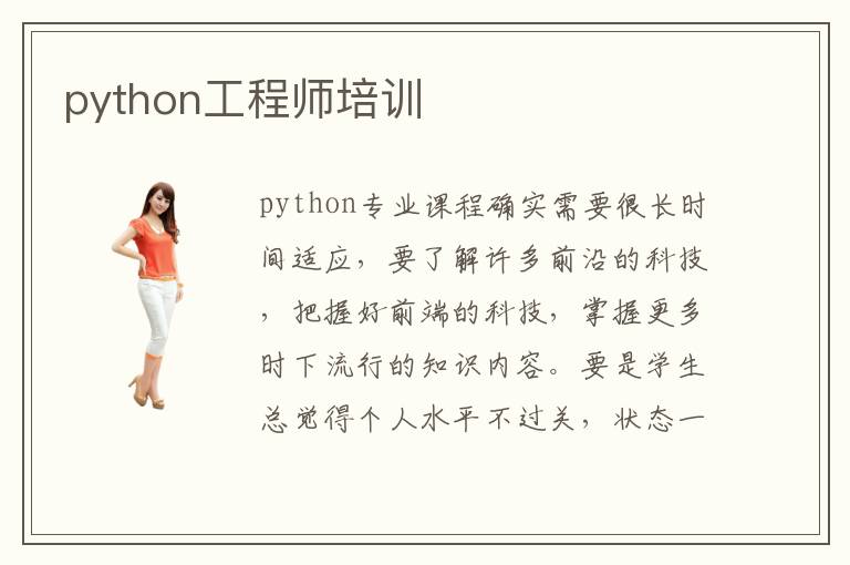 python專業(yè)課程確實需要很長時間適應(yīng),要了解許多前沿的科技,把握好前端的科技,掌握更多時下流行的知識內(nèi)容。要是學(xué)生總覺得個人水平不過關(guān),狀態(tài)一直都不夠好,長時間都無法提高python工程專業(yè)能力,可以選擇比較重要的python工程師培訓(xùn)課程,找到很好的復(fù)習(xí)方案,從而發(fā)揮出好的學(xué)習(xí)成績,體現(xiàn)出自身的水準(zhǔn)。python工程師培訓(xùn)水平怎么樣,python工程師培訓(xùn)水平很高,老師可以突出很多重要的學(xué)習(xí)重點,技術(shù)含量也相當(dāng)不錯。python工程師培訓(xùn)枯燥嗎,python工程師培訓(xùn)課程不會很枯燥,大家可以快速適應(yīng),老師想方設(shè)法營造很融洽的氛圍,使大家可以積極主動參與課堂討論,而且同學(xué)之間交流的機會更多,老師與同學(xué)之間的互動頻率快速上升,學(xué)習(xí)進度往往可以得到有效改善。