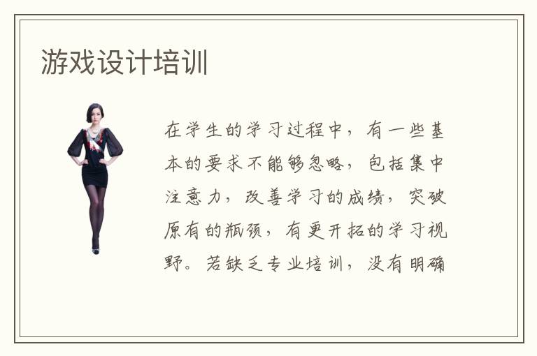 在學生的學習過程中,有一些基本的要求不能夠忽略,包括集中注意力,改善學習的成績,突破原有的瓶頸,有更開拓的學習視野。若缺乏專業(yè)培訓,沒有明確的目標,可以考慮游戲設計培訓,得到很好的技能培訓,老師將鍛煉經驗傳授給學生,充分體現(xiàn)出游戲設計培訓水準,實現(xiàn)心目中想象的學習成果。游戲設計培訓有要求嗎,游戲設計培訓機構當然有比較嚴格的課程要求,比如學生應該認真做準備,了解各種學習的課程,關注前沿知識。而且每個階段都要鞏固好自己的知識結構,彌補各種學習的漏洞。假如說學員不太重視老師的指導方案,平時上課也不認真聽講,課后不及時完成作業(yè),即便再優(yōu)秀的培訓機構,也很難教出優(yōu)秀的學生。所以說要謹慎安排自己的時間,按部就班完成教學內容。