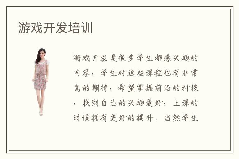 游戲開發(fā)是很多學(xué)生都感興趣的內(nèi)容,學(xué)生對(duì)這些課程也有非常高的期待,希望掌握前沿的科技,找到自己的興趣愛好,上課的時(shí)候擁有更好的提升。當(dāng)然學(xué)生不能只看到學(xué)習(xí)的好處,還應(yīng)該多關(guān)注各種學(xué)習(xí)的方法和難以突破的地方,針對(duì)自己未知領(lǐng)域,進(jìn)行細(xì)致的學(xué)習(xí),及時(shí)查漏補(bǔ)缺,進(jìn)步空間會(huì)更大。而現(xiàn)在有非常多專業(yè)的游戲開發(fā)培訓(xùn)機(jī)構(gòu)和課程,可以滿足學(xué)生的要求,突出學(xué)習(xí)重點(diǎn),發(fā)揮更好的補(bǔ)習(xí)優(yōu)勢(shì)。游戲開發(fā)培訓(xùn)氣氛非常不錯(cuò),大多數(shù)學(xué)校都有很好的教學(xué)方案,提供全面的輔導(dǎo)內(nèi)容,所以學(xué)生總是可以在輕松的環(huán)境下學(xué)習(xí)。游戲開發(fā)培訓(xùn)方式非常豐富,比如在線指導(dǎo)教學(xué),就業(yè)指導(dǎo)課程,職場(chǎng)實(shí)踐教學(xué)等等,讓大家可以將理論知識(shí)與實(shí)踐融合起來(lái),與工作的技能接軌。