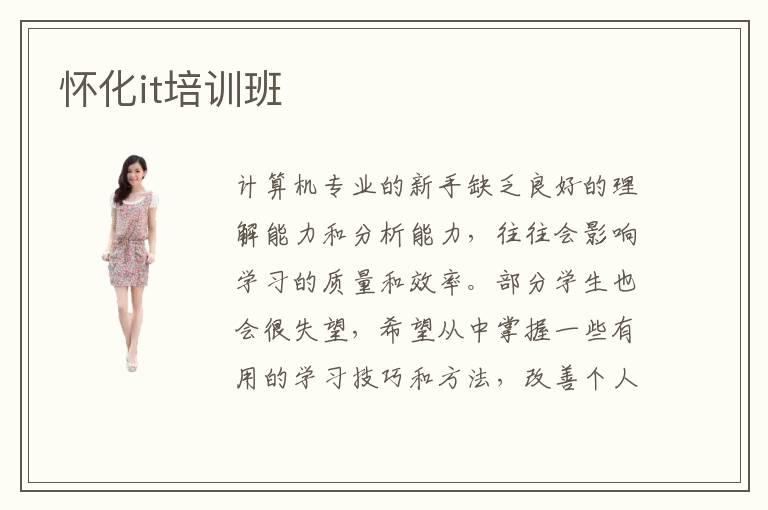 計(jì)算機(jī)專業(yè)的新手缺乏良好的理解能力和分析能力,往往會(huì)影響學(xué)習(xí)的質(zhì)量和效率。部分學(xué)生也會(huì)很失望,希望從中掌握一些有用的學(xué)習(xí)技巧和方法,改善個(gè)人的水準(zhǔn),這時(shí)選擇懷化it培訓(xùn)班也許是非常好的方式。it培訓(xùn)班熱門(mén)嗎,IT培訓(xùn)機(jī)構(gòu)當(dāng)然有非常高的熱度,因?yàn)檫@些專業(yè)指導(dǎo)機(jī)構(gòu)非常受歡迎,培訓(xùn)的效果很好,可以兼顧細(xì)節(jié),滿足學(xué)生的基本學(xué)習(xí)要求。而且專業(yè)機(jī)構(gòu)有強(qiáng)大的教師隊(duì)伍,提供陪伴式的服務(wù),學(xué)生從剛開(kāi)始接觸,到熟練應(yīng)用,時(shí)間不需要很長(zhǎng)。it培訓(xùn)班學(xué)習(xí)時(shí)間大概在1個(gè)月到4個(gè)月,不過(guò)部分學(xué)生的實(shí)際應(yīng)用水準(zhǔn)不同,對(duì)自身的要求不太一樣,時(shí)間安排會(huì)有變化。部分學(xué)生覺(jué)得自己的時(shí)間比較緊迫,所以會(huì)選擇一些簡(jiǎn)單的課程內(nèi)容,都要很快就可以掌握。