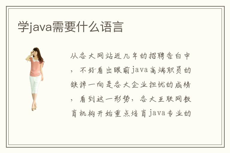 從各大網(wǎng)站近幾年的招聘告白中,不好看出眼前java高端職員的缺掉一向是各大企業(yè)擔(dān)憂的成績,看到這一形勢,各大互聯(lián)網(wǎng)教育機構(gòu)開始重點培育java專業(yè)的學(xué)生了。想必人人都曉得,互聯(lián)網(wǎng)專業(yè)的學(xué)習(xí)是很費腦力的,那末學(xué)java需要什么語言基礎(chǔ)常識呢java的學(xué)習(xí)需要把握必然的編程基礎(chǔ),需要結(jié)壯練習(xí)基礎(chǔ),最好是再把握一些英語才能,以便更好的學(xué)習(xí)java。學(xué)java需要什么語言推薦電腦學(xué)校