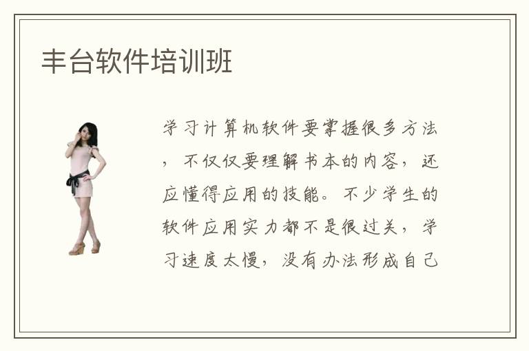 學(xué)習(xí)計(jì)算機(jī)軟件要掌握很多方法,不僅僅要理解書本的內(nèi)容,還應(yīng)懂得應(yīng)用的技能。不少學(xué)生的軟件應(yīng)用實(shí)力都不是很過(guò)關(guān),學(xué)習(xí)速度太慢,沒(méi)有辦法形成自己的軟件課程知識(shí)框架。為了避免這些問(wèn)題影響后續(xù)的發(fā)展,學(xué)生可考慮豐臺(tái)軟件培訓(xùn)班,解決實(shí)際應(yīng)用的難題。軟件培訓(xùn)班任務(wù)多嗎,軟件培訓(xùn)班的教學(xué)任務(wù)眾多,學(xué)生可以結(jié)合個(gè)人的基礎(chǔ)和現(xiàn)狀,選擇合適的課程和任務(wù)量,控制學(xué)習(xí)的難度,提高軟件應(yīng)用的優(yōu)勢(shì)。其實(shí)很多學(xué)生都不太懂如何保障學(xué)習(xí)的效果,所以總是會(huì)忽略掉重要的課程和學(xué)習(xí)方法,導(dǎo)致跟不上老師的軟件講課程度。經(jīng)過(guò)專業(yè)輔導(dǎo)班的幫助,有利于改善大家的軟件學(xué)科學(xué)習(xí)思維和方法,積累更多軟件應(yīng)用經(jīng)驗(yàn)和實(shí)戰(zhàn)演練的經(jīng)典案例,從而確保軟件培訓(xùn)班效果。