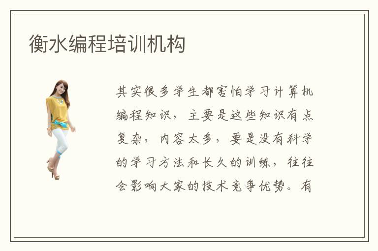 其實(shí)很多學(xué)生都害怕學(xué)習(xí)計(jì)算機(jī)編程知識,主要是這些知識有點(diǎn)復(fù)雜,內(nèi)容太多,要是沒有科學(xué)的學(xué)習(xí)方法和長久的訓(xùn)練,往往會(huì)影響大家的技術(shù)競爭優(yōu)勢。有些學(xué)生感覺學(xué)習(xí)壓力以及負(fù)擔(dān)很重,學(xué)習(xí)進(jìn)度很慢,沒有辦法將多種編程解題的思路和方案掌握起來,面臨許多困境和難題。其實(shí)學(xué)生有類似困境的情況下,可選擇衡水編程培訓(xùn)機(jī)構(gòu),老師會(huì)將一些重要的計(jì)算機(jī)編程學(xué)習(xí)方法和途徑告訴大家,從而享受其中的學(xué)習(xí)過程。編程培訓(xùn)機(jī)構(gòu)哪些好,要挑選編程培訓(xùn)機(jī)構(gòu),應(yīng)該考慮的是教育水準(zhǔn)、專業(yè)設(shè)計(jì)方案、課程教學(xué)內(nèi)容等等,綜合進(jìn)行考慮。有的學(xué)校有大量的輔導(dǎo)課程,科學(xué)安排學(xué)習(xí)時(shí)間,減少學(xué)生在應(yīng)用過程可能存在的負(fù)擔(dān),所以學(xué)習(xí)起來會(huì)更容易看到編程培訓(xùn)機(jī)構(gòu)成果。
