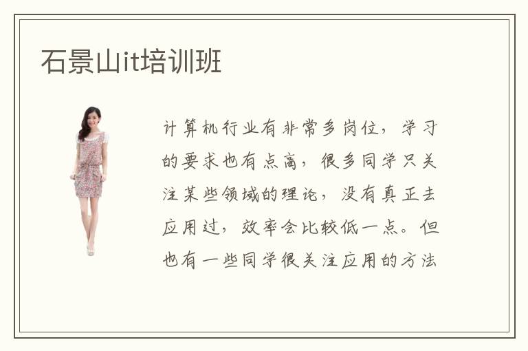 計(jì)算機(jī)行業(yè)有非常多崗位,學(xué)習(xí)的要求也有點(diǎn)高,很多同學(xué)只關(guān)注某些領(lǐng)域的理論,沒有真正去應(yīng)用過,效率會比較低一點(diǎn)。但也有一些同學(xué)很關(guān)注應(yīng)用的方法,也會將許多工作崗位的應(yīng)用與平時的學(xué)習(xí)結(jié)合在一起,學(xué)習(xí)成果會好很多。石景山it培訓(xùn)班有大量課程,每個階段都會分析學(xué)生的掌握效果以及基礎(chǔ)能力,結(jié)合行業(yè)的發(fā)展以及整體的變化,為大家介紹專業(yè)課程,大大緩解it行業(yè)的壓力。其實(shí)大家都知道,如今計(jì)算機(jī)行業(yè)發(fā)展很快,競爭壓力也比較大,但只要把握一些重點(diǎn)的技術(shù),在工作上充分表現(xiàn)出來,發(fā)揮空間會大很多。it培訓(xùn)班如何選,要想選擇輔導(dǎo)班,應(yīng)該看看輔導(dǎo)的方法,老師介紹的培訓(xùn)內(nèi)容以及教學(xué)質(zhì)量等,如果教學(xué)質(zhì)量比較普通,學(xué)習(xí)效果應(yīng)該很難跟得上去。