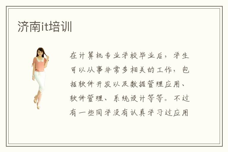 在計算機專業(yè)學校畢業(yè)后,學生可以從事非常多相關的工作,包括軟件開發(fā)以及數(shù)據(jù)管理應用、軟件管理、系統(tǒng)設計等等。不過有一些同學沒有認真學習過應用的知識,因此在找工作時,會面臨很多難題。面對這些情況,學生可以通過報名輔導班的方法來解決,由專業(yè)老師安排IT專業(yè)技術課程和教學內(nèi)容,趕快完善個人的知識結(jié)構(gòu)和應用水平,相信短時間內(nèi)會有進步。濟南it培訓學校有非常多專業(yè)的教學團隊,而且也會制定一個完整的it培訓課程體系,滿足日常學習需求。it有哪些課程,目前的輔導班的課程還是很豐富的,也有很全面的指導內(nèi)容,比如網(wǎng)絡建設,網(wǎng)絡維護,軟件開發(fā)和應用,系統(tǒng)安裝調(diào)試、檢測等等。如果同學想報名,可以看看每個培訓機構(gòu)的能力和教學內(nèi)容。