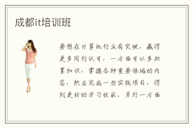 要想在計(jì)算機(jī)行業(yè)有突破,贏得更多同行認(rèn)可,一方面可以多積累知識(shí),掌握各種重要領(lǐng)域的內(nèi)容,然后完成一些實(shí)踐項(xiàng)目,得到更好的學(xué)習(xí)收獲。另外一方面可以考取相關(guān)證書,比如計(jì)算機(jī)工程師、網(wǎng)絡(luò)工程師等等認(rèn)證資格,也能迅速得到更多技術(shù)認(rèn)證的機(jī)會(huì)。成都it培訓(xùn)班會(huì)培養(yǎng)同學(xué)的計(jì)算機(jī)編程應(yīng)用能力,在每一個(gè)領(lǐng)域都會(huì)有詳細(xì)介紹,根據(jù)大家的技術(shù)薄弱環(huán)節(jié)和應(yīng)用水準(zhǔn),安排相關(guān)的it課程。所以學(xué)生只要聽指導(dǎo)老師的安排,努力學(xué)習(xí)課堂的技術(shù),都會(huì)有顯著進(jìn)展。it培訓(xùn)班哪些好,it輔導(dǎo)班的類型比較多,要求也很嚴(yán)謹(jǐn),可以培養(yǎng)大量專業(yè)人才。如果同學(xué)能力很差,剛剛起步,對(duì)計(jì)算機(jī)專業(yè)知識(shí)不理解,可著重挑選it培訓(xùn)班基礎(chǔ)訓(xùn)練,一步一步積累,快速達(dá)到入門級(jí)狀態(tài)。