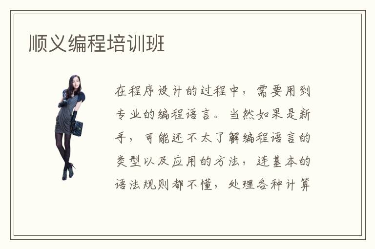 在程序設(shè)計的過程中,需要用到專業(yè)的編程語言。當然如果是新手,可能還不太了解編程語言的類型以及應(yīng)用的方法,連基本的語法規(guī)則都不懂,處理各種計算機軟件和程序功能的時候,會變得異常艱難。順義編程培訓(xùn)班可分析很多常用的語言類型,包括python編程語言,java編程語言,數(shù)據(jù)庫開發(fā)語言,C語言等。然后再介紹這些語言的功能、使用的場景和具體的使用方法,使專業(yè)學員在應(yīng)用編程語言時,都能找到正確的技巧。編程培訓(xùn)班有哪些好處,編程輔導(dǎo)培訓(xùn)班會對比常見語言的特點,也會強化一些重要的技術(shù)訓(xùn)練,使大家積累很多編程應(yīng)用的技巧。編程培訓(xùn)班的課程多元,應(yīng)用領(lǐng)域的課程很豐富,主要就是應(yīng)對于不同的使用環(huán)境,分析不一樣的編程應(yīng)用技術(shù),促使大家進步更快。