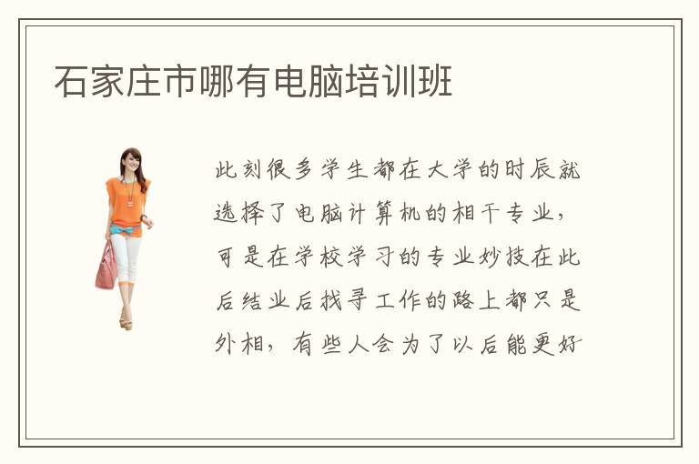 此刻很多學生都在大學的時辰就選擇了電腦計算機的相干專業(yè),可是在學校學習的專業(yè)妙技在此后結(jié)業(yè)后找尋工作的路上都只是外相,有些人會為了以后能更好的工作,會選擇去一些計算機專業(yè)學校停止學習,把握更多的專業(yè)妙技相干常識。那末,石家莊市哪有電腦培訓班呢接上去,我就來告訴人人一些在石家莊市的電腦培訓班吧,僅供參考哦!石家莊市哪有電腦培訓班推薦電腦學校