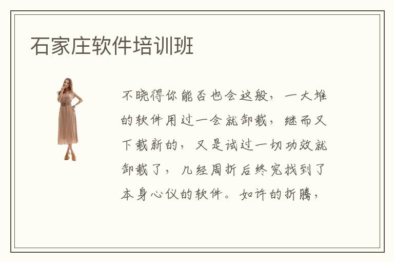 不曉得你能否也會(huì)這般,一大堆的軟件用過(guò)一會(huì)就卸載,繼而又下載新的,又是試過(guò)一切功效就卸載了,幾經(jīng)周折后終究找到了本身心儀的軟件。如許的折騰,還不如本身來(lái)石家莊軟件培訓(xùn)班學(xué)習(xí)軟件開發(fā),設(shè)計(jì)出本身驚喜的軟件,作為本身的專屬。如果想要再專業(yè)些,亦可以去往石家莊軟件培訓(xùn)軟件培訓(xùn)機(jī)構(gòu),選擇合適本身的課程,學(xué)習(xí)相干專業(yè)常識(shí),今后走上軟件開發(fā)的途徑。石家莊軟件培訓(xùn)班推薦電腦學(xué)校
