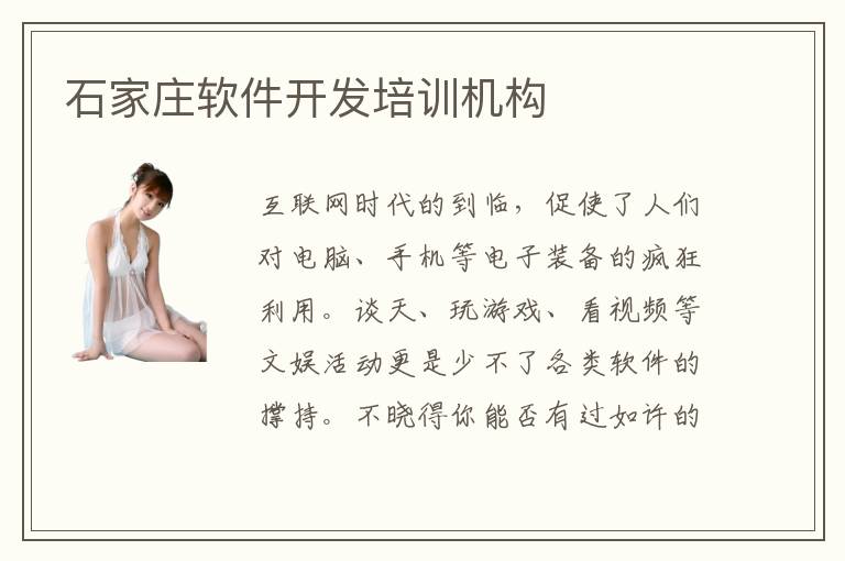 互聯(lián)網(wǎng)時(shí)代的到臨,促使了人們對(duì)電腦、手機(jī)等電子裝備的瘋狂利用。談天、玩游戲、看視頻等文娛活動(dòng)更是少不了各類軟件的撐持。不曉得你能否有過如許的抱負(fù),成為一個(gè)軟件開發(fā)工程師,在將來能夠讓本身在意的人用上本身為她們開發(fā)的專屬軟件,就像從你的全球途經(jīng)中,茅十八賜與了荔枝愛的專屬軟件。石家莊軟件開發(fā)學(xué)校開設(shè)了相干專業(yè)課程,同時(shí),更多具體課程介紹,都在這里!石家莊軟件培訓(xùn)軟件培訓(xùn)學(xué)校,給你一個(gè)機(jī)遇,賜與專屬的機(jī)遇。石家莊軟件開發(fā)培訓(xùn)機(jī)構(gòu)推薦電腦學(xué)校