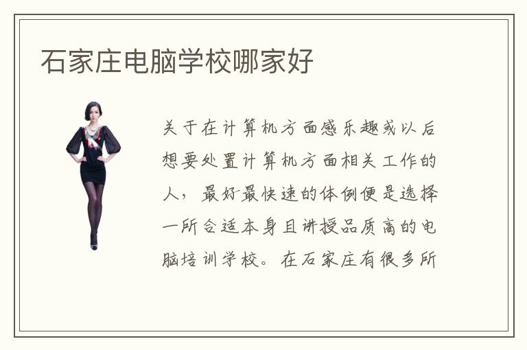 關(guān)于在計(jì)算機(jī)方面感樂(lè)趣或以后想要處置計(jì)算機(jī)方面相關(guān)工作的人,最好最快速的體例便是選擇一所合適本身且講授品質(zhì)高的電腦培訓(xùn)學(xué)校。在石家莊有很多所電腦學(xué)校,好比石家莊新華電腦學(xué)校,石家莊分校等等。那末石家莊電腦學(xué)校哪家好呢人人可以去各個(gè)學(xué)校的官網(wǎng)停止對(duì)比,終究選出一所最合適本身學(xué)習(xí)電腦專業(yè)色學(xué)校。石家莊電腦學(xué)校哪家好推薦電腦學(xué)校