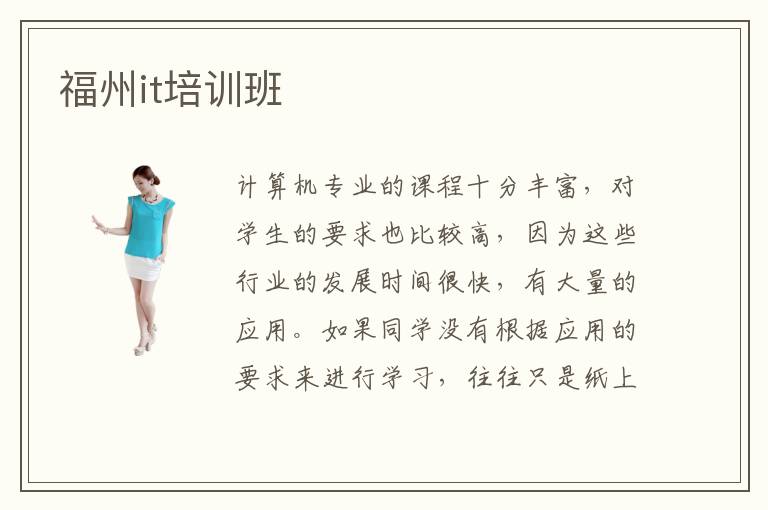 計算機專業(yè)的課程十分豐富,對學生的要求也比較高,因為這些行業(yè)的發(fā)展時間很快,有大量的應(yīng)用。如果同學沒有根據(jù)應(yīng)用的要求來進行學習,往往只是紙上談兵,很難發(fā)揮理想學習空間。不少同學感覺計算機專業(yè)的學習難度有點大,學習進步太慢,沒有辦法達到目標,難免會形成壓力。福州it培訓班可以緩解同學的負擔,通過明確的學習目標和分析方案,使大家掌握更多計算機應(yīng)用的技巧,解決計算機學習過程的困惑,從而達到更高的要求。it專員的職責主要是負責軟件開發(fā)、計算機應(yīng)用以及網(wǎng)絡(luò)工程等等。it培訓班入門教學比較重要,老師會從基礎(chǔ)語法知識或者教材的角度出發(fā),結(jié)合大家的需求和就業(yè)的方向,安排一些重點項目。只要同學跟上老師的授課節(jié)奏,積累專業(yè)知識,學習效果會很好。