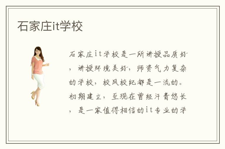 石家莊it學(xué)校是一所講授品質(zhì)好,講授環(huán)境美好,師資氣力復(fù)雜的學(xué)校,校風(fēng)校紀(jì)都是一流的。初期建立,至現(xiàn)在曾經(jīng)汗青悠長(zhǎng),是一家值得相信的it專業(yè)的學(xué)校。國(guó)內(nèi)很多優(yōu)異的it行業(yè)人材都曾在這所學(xué)校里接管教育,對(duì)石家莊it學(xué)校的評(píng)估也都是拍案叫絕。若是想此后處置it行業(yè),還在思慮報(bào)考哪所學(xué)校,請(qǐng)記著石家莊it學(xué)校必然是你的不貳之選。石家莊it學(xué)校推薦電腦學(xué)校