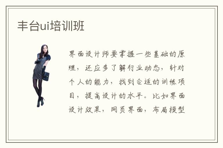 界面設計師要掌握一些基礎的原理,還應多了解行業(yè)動態(tài),針對個人的能力,找到合適的訓練項目,提高設計的水平。比如界面設計效果,網(wǎng)頁界面,布局模型,以及各個領域的設計方法,其中比較常見的是APP界面設計,圖標設計,前端開發(fā)設計。豐臺ui培訓班可以將培訓課程劃分為幾個階段,首先在起步階段,通常會制定軟件工具以及設計視覺效果課程。在進階階段,老師也更加強調(diào)專業(yè)內(nèi)容網(wǎng)頁設計,然后把各種網(wǎng)頁分為多個領域,重要的領域有電商網(wǎng)頁界面,企業(yè)網(wǎng)站界面,游戲開發(fā)界面等。在后續(xù)階段,同學還需要把前幾個階段的內(nèi)容鞏固起來,真正發(fā)揮理論與實踐應用的價值。ui設計師負責什么任務,要負責軟件界面開發(fā)項目,若能力不夠強,可以報名ui培訓班的課程。