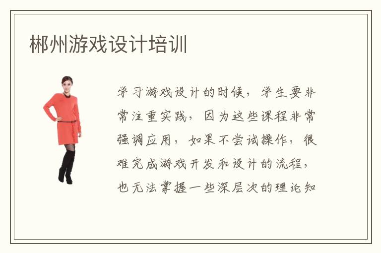 郴州游戲設(shè)計(jì)培訓(xùn)