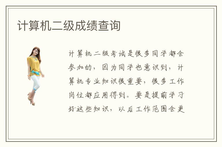 計算機(jī)二級考試是很多同學(xué)都會參加的,因為同學(xué)也意識到,計算機(jī)專業(yè)知識很重要,很多工作崗位都應(yīng)用得到。要是提前學(xué)習(xí)好這些知識,以后工作范圍會更廣,工作能力更強(qiáng),更可以得到公司的認(rèn)可和信賴。計算機(jī)二級成績查詢可以通過網(wǎng)上查詢以及信息查詢等多種方式進(jìn)行,在考試完之后,在兩個月到三個月內(nèi)就可以得到成績。計算機(jī)二級大概準(zhǔn)備多久,其實大家的復(fù)習(xí)時間都不太一樣,有些同學(xué)準(zhǔn)備一兩個月就能夠深入了解計算機(jī)考試的核心,也能分析清楚難點和重點,備考更加充分。自學(xué)計算機(jī)二級怎么樣,自學(xué)計算機(jī)二級考試也是可以的,但是要花比較長的時間準(zhǔn)備,而且要反復(fù)思考和總結(jié)。有些同學(xué)的自學(xué)能力不算強(qiáng),速度會比較慢,大家要花更長時間,不要總是漫不經(jīng)心。