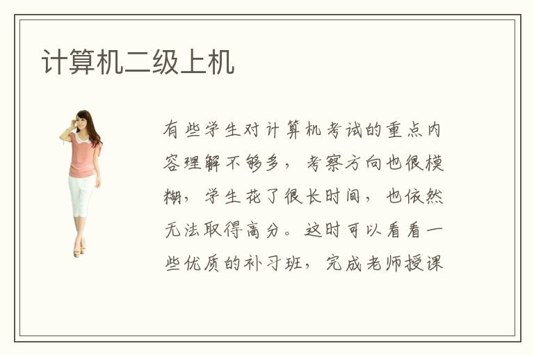 有些學(xué)生對計算機考試的重點內(nèi)容理解不夠多,考察方向也很模糊,學(xué)生花了很長時間,也依然無法取得高分。這時可以看看一些優(yōu)質(zhì)的補習(xí)班,完成老師授課的方案,減少學(xué)習(xí)當中的難題。計算機二級上機,計算機二級重要不,計算機二級考試當然有重要價值,首先是幫助同學(xué)查漏補缺,同學(xué)經(jīng)過緊張的備考后,將各種重要的知識內(nèi)容進行深入的分析,快速取得良好的成績。另外同學(xué)要是有疑問,可以繼續(xù)請教專業(yè)老師,彌補計算機方面的知識漏洞,在工作中取得更多優(yōu)勢。計算機二級哪些科目容易,每個人的擅長之處以及感興趣的領(lǐng)域都不同,報名的科目也不一樣。有些學(xué)生比較喜歡學(xué)習(xí)辦公軟件的知識,或者工作中比較常用到這些技術(shù),所以會選擇MS office二級考試。