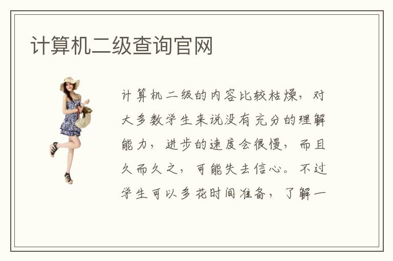 計算機(jī)二級的內(nèi)容比較枯燥,對大多數(shù)學(xué)生來說沒有充分的理解能力,進(jìn)步的速度會很慢,而且久而久之,可能失去信心。不過學(xué)生可以多花時間準(zhǔn)備,了解一些計算機(jī)二級考試的備考思路,關(guān)注學(xué)習(xí)的重要知識,結(jié)合一些整體訓(xùn)練,提高自己的知識應(yīng)用能力和解題能力。如果同學(xué)復(fù)習(xí)階段做好充分準(zhǔn)備,查詢成績時,會有比較好的成績,但是如果水平不是很強(qiáng),可能會影響考試的分?jǐn)?shù)。在考完試后的兩個月左右,學(xué)生便可關(guān)注計算機(jī)考試的成績公布時間,一般是搜索計算機(jī)二級查詢官網(wǎng),了解考試的重點(diǎn)和要求。計算機(jī)二級有什么要求,首先二級考試要求就是學(xué)生要理解基礎(chǔ)的應(yīng)用,學(xué)習(xí)重要的技術(shù)應(yīng)用方法。如果有需要,可以參加計算機(jī)二級精講課程,提高考試的成績。