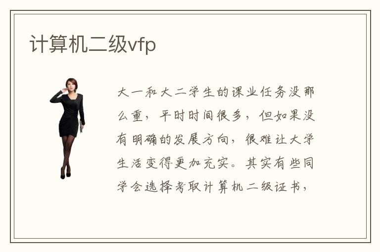大一和大二學(xué)生的課業(yè)任務(wù)沒那么重,平時時間很多,但如果沒有明確的發(fā)展方向,很難讓大學(xué)生活變得更加充實。其實有些同學(xué)會選擇考取計算機二級證書,畢竟這些證書不需要學(xué)歷背景,不管是本專業(yè)的學(xué)生,還是非本專業(yè)學(xué)生,都能夠報名參加。不少學(xué)生認為計算機二級vfp非常有用,所以想要報名這些科目,這時不妨看看不同科目的作用以及應(yīng)用的要求、學(xué)習的價值等等。計算機二級有哪些用處,計算機二級的主要作用就是幫助大家鞏固知識,找到計算機方面的不足領(lǐng)域,然后進行系統(tǒng)的訓(xùn)練,提高考試成績。計算機二級什么時候報名,每一年的報名時間都存在一些變動,學(xué)生可以搜索報名考試網(wǎng)站,或者是參考往年的考試時間,但具體還是要根據(jù)當年的實際情況來判斷。