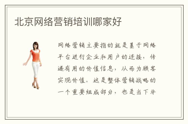 網(wǎng)絡營銷主要指的就是基于網(wǎng)絡平臺進行企業(yè)和用戶的連接,傳遞有用的價值信息,從而為顧客實現(xiàn)價值。這是整體營銷戰(zhàn)略的一個重要組成部分,也是當下非常熱門的領域,學校要是掌握該領域的技術,在工作上會有很多優(yōu)勢。北京網(wǎng)絡營銷培訓哪家好,學生要考慮不同輔導機構的教學能力、教學內(nèi)容、教學速度。若網(wǎng)絡培訓機構的教學能力很強,教學成果有保障,學生收獲很大,當然值得考慮。網(wǎng)絡營銷培訓速度很快,培訓班的教育水平都不錯,可以劃分多個層面的課程,幫助同學整理知識,由簡單理論到復雜應用,一步步進行清晰講解。網(wǎng)絡營銷是什么,網(wǎng)絡營銷指的就是利用互聯(lián)網(wǎng)平臺,連接用戶和企業(yè)的聯(lián)系。這些技術要求比較高,需要大家進行反復訓練,學習深層的內(nèi)容。