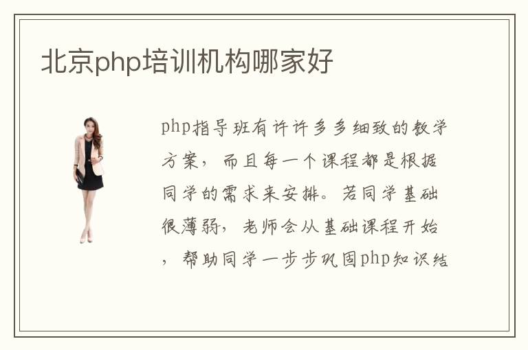 php指導(dǎo)班有許許多多細致的教學(xué)方案,而且每一個課程都是根據(jù)同學(xué)的需求來安排。若同學(xué)基礎(chǔ)很薄弱,老師會從基礎(chǔ)課程開始,幫助同學(xué)一步步鞏固php知識結(jié)構(gòu)。要是同學(xué)的php應(yīng)用能力很強,老師會結(jié)合工作應(yīng)用的要求,安排許多應(yīng)用訓(xùn)練項目,使大家的知識視野更開闊,對自己的要求更高,從而贏得更多進步。北京php培訓(xùn)機構(gòu)哪家好其實很難做定論,畢竟大家所需的課程不同,而且培訓(xùn)機構(gòu)的教學(xué)側(cè)重點存在差別,所以同學(xué)要謹慎選擇。php培訓(xùn)機構(gòu)的效果很不錯,許多學(xué)校的管理水平都十分優(yōu)越,教育能力很強,可以幫助大家節(jié)約很多復(fù)習(xí)時間,掌握大量的php應(yīng)用。在學(xué)習(xí)時,學(xué)生要跟隨老師的步伐,掌握基礎(chǔ)應(yīng)用內(nèi)容,同時也要梳理知識結(jié)構(gòu),提高應(yīng)用水平和學(xué)習(xí)能力。