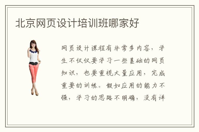 網(wǎng)頁設計課程有非常多內容,學生不僅僅要學習一些基礎的網(wǎng)頁知識,也要重視大量應用,完成重要的訓練。假如應用的能力不強,學習的思路不明確,沒有詳細的訓練任務,進步的速度會比較慢。有的同學感覺自己的學習速度跟不上周圍優(yōu)秀的同學,所以會考慮網(wǎng)頁設計輔導班的幫助,由專業(yè)的網(wǎng)頁開發(fā)老師提供細致的指導。北京網(wǎng)頁設計培訓設計培訓班哪家好,主要看每個網(wǎng)頁設計培訓班的老師、教學速度、培訓內容。部分網(wǎng)頁設計輔導班的老師非常專業(yè),具有多年培訓經(jīng)驗,每個階段都有詳細的課程介紹,同學收獲會十分明顯。網(wǎng)頁設計要學什么,網(wǎng)頁設計的課程非常多,包括移動界面設計、網(wǎng)頁設計基礎、平面設計、企業(yè)畫冊設計等等,因為工具非常多,學生也要掌握一些設計的工具。