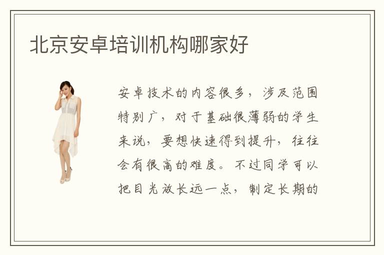 安卓技術的內容很多,涉及范圍特別廣,對于基礎很薄弱的學生來說,要想快速得到提升,往往會有很高的難度。不過同學可以把目光放長遠一點,制定長期的學習規(guī)劃,由淺入深,一步步掌握重點內容。不少學生感覺安卓技術太難懂,所以會考慮報名安卓輔導機構,爭取贏得更多進步。北京安卓培訓安卓培訓機構哪家好,其實很難做一個一致的判斷,主要就是安卓培訓機構的教育水準不同,學習的氛圍不太一樣,同學的評價也有差別。假如學生找到一些口碑很好的院校,說明機構的教學質量比較出眾,值得大家期待。安卓輔導班的授課時間大概是一個月到半年,但事實上同學的學習進展不同,基礎水平不一樣,時間當然要波動。安卓開發(fā)要學什么,主要用到的是Java,所以學生要著重關注這些重要編程。