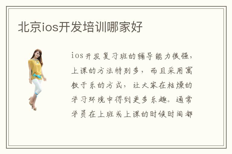 ios開發(fā)復習班的輔導能力很強,上課的方法特別多,而且采用寓教于樂的方式,讓大家在枯燥的學習環(huán)境中得到更多樂趣。通常學員在上班或上課的時候時間都很緊迫,基本沒有業(yè)余時間,更難抽出時間到輔導班現場上課。這時可以選擇網絡課程的方式,一方面可以自由安排上課時間,另外一方面也可以在互聯網上多交流,克服很多學習的難點。其實不同培訓班教學成果、培訓的內容、培訓質量都不一樣,學生要想找到好好的培訓機構,可以多對比北京ios開發(fā)培訓哪家好,然后再進行篩選。ios開發(fā)有哪些應用,郵件客戶端、筆記本、pdf閱讀器,都是重要的應用。ios開發(fā)的課程主要有c語言編程、語言程序設計、數據庫等等。大家要好好掌握這些內容,從而在工作中有更多表現優(yōu)勢。