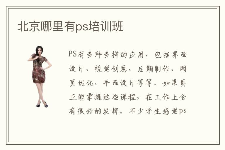 PS有多種多樣的應用,包括界面設計、視覺創(chuàng)意、后期制作、網(wǎng)頁優(yōu)化、平面設計等等。如果真正能掌握這些課程,在工作上會有很好的發(fā)揮。不少學生感覺ps的應用很難,學習速度慢,成績也不太理想,所以會很被動,不得不考慮PS培訓班的指導。北京哪里有ps培訓班,大家要對比一下每個PS培訓班的綜合水準、培訓方式、培訓能力等等。有一些培訓班的水平頗高,綜合能力強,培訓方式多種多樣,學生進步效果會很好。還有部分培訓班會介紹ps在線課程,結合大量ps的應用領域,進行嚴格的教學,同學完成這些訓練后,成績會好很多。不過在復習階段不能只依賴培訓機構,學生自己應該有獨立的思考,然后多多練習。畢竟培訓班只有幾個月的課程,學生要有長遠的進步,就應該長期堅持學習。