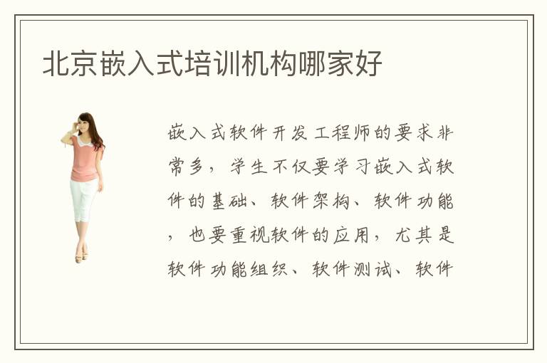 嵌入式軟件開(kāi)發(fā)工程師的要求非常多,學(xué)生不僅要學(xué)習(xí)嵌入式軟件的基礎(chǔ)、軟件架構(gòu)、軟件功能,也要重視軟件的應(yīng)用,尤其是軟件功能組織、軟件測(cè)試、軟件程序開(kāi)發(fā)。同學(xué)并不是很理解這些內(nèi)容,學(xué)習(xí)過(guò)程的負(fù)擔(dān)特別重,所以想知道北京嵌入式培訓(xùn)哪里好,盡可能快速找到好機(jī)構(gòu),爭(zhēng)取更多學(xué)習(xí)優(yōu)勢(shì)。嵌入式培訓(xùn)班熱門(mén)嗎,嵌入式軟件培訓(xùn)軟件培訓(xùn)班當(dāng)然很熱門(mén),因?yàn)檫@些培訓(xùn)機(jī)構(gòu)采用寓教于樂(lè)的方式,讓人本復(fù)雜的枯燥的軟件基礎(chǔ)知識(shí),通過(guò)老師的指點(diǎn)變得更加有趣。而且老師會(huì)嘗試介紹其他專(zhuān)業(yè)的學(xué)科,讓大家的視野更加開(kāi)闊,在掌握嵌入式軟件開(kāi)發(fā)知識(shí)的同時(shí),也能學(xué)習(xí)更廣闊的內(nèi)容。如有同學(xué)也想?yún)⒓舆@些課程,不妨多多對(duì)比這些輔導(dǎo)班的教學(xué)優(yōu)勢(shì),培訓(xùn)的目標(biāo),結(jié)合自己的需求考慮。