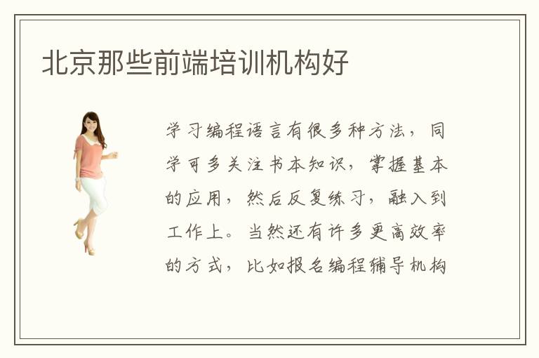 學(xué)習(xí)編程語(yǔ)言有很多種方法,同學(xué)可多關(guān)注書(shū)本知識(shí),掌握基本的應(yīng)用,然后反復(fù)練習(xí),融入到工作上。當(dāng)然還有許多更高效率的方式,比如報(bào)名編程輔導(dǎo)機(jī)構(gòu),老師會(huì)結(jié)合前沿的技術(shù)以及同學(xué)的應(yīng)用能力,安排恰當(dāng)?shù)恼n程,進(jìn)行針對(duì)性的訓(xùn)練,使大家快速贏得進(jìn)步。大家要想知道北京學(xué)編程那里培訓(xùn)好,應(yīng)該看看編程輔導(dǎo)班的輔導(dǎo)能力、培訓(xùn)目標(biāo)。因?yàn)橛行W(xué)校確實(shí)相當(dāng)突出,教學(xué)水平很高,培訓(xùn)目標(biāo)明確,學(xué)生很快就看到收獲。編程輔導(dǎo)班的授課方法主要有網(wǎng)絡(luò)授課、大班教學(xué)、1對(duì)1授課。網(wǎng)絡(luò)授課非常受歡迎,因?yàn)樵诩疑险n,不需要受到空間地點(diǎn)限制。編程有什么應(yīng)用,編程的應(yīng)用很廣泛,比如操作系統(tǒng)應(yīng)用、軟件開(kāi)發(fā)工具、計(jì)算機(jī)操作系統(tǒng)、網(wǎng)絡(luò)優(yōu)化,作為計(jì)算機(jī)專(zhuān)業(yè)的同學(xué),要認(rèn)真學(xué)習(xí)這些學(xué)科。
