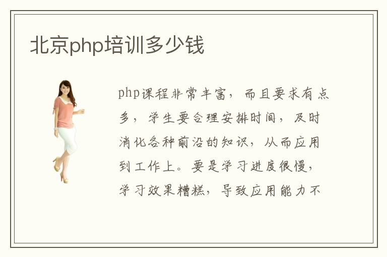 php課程非常豐富,而且要求有點(diǎn)多,學(xué)生要合理安排時(shí)間,及時(shí)消化各種前沿的知識(shí),從而應(yīng)用到工作上。要是學(xué)習(xí)進(jìn)度很慢,學(xué)習(xí)效果糟糕,導(dǎo)致應(yīng)用能力不夠強(qiáng),都可以參加php培訓(xùn)班的課程,完成重要訓(xùn)練,優(yōu)化個(gè)人的技術(shù)能力。php培訓(xùn)多少錢北京,可能是4000~8000,但事實(shí)上這些費(fèi)用存在很多以上因素,包括培訓(xùn)的方式、學(xué)校類型、教育課程。不少學(xué)生都希望找到高級(jí)的院校,提高學(xué)習(xí)效率,改善學(xué)習(xí)成果,費(fèi)用可能比別的普通學(xué)校更高。php在線教學(xué)很重要,假如同學(xué)的時(shí)間緊迫,基礎(chǔ)理論不扎實(shí),應(yīng)用能力不過(guò)關(guān),都可以報(bào)名的課程,從而爭(zhēng)取短期內(nèi)取得更好的進(jìn)步。php有哪些應(yīng)用,php應(yīng)用確實(shí)非常全面,包括程序開(kāi)發(fā)與設(shè)計(jì)、軟件應(yīng)用、網(wǎng)頁(yè)制作、界面設(shè)計(jì)等等。
