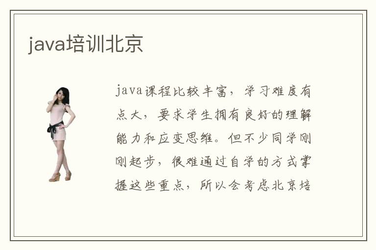 java課程比較豐富,學(xué)習(xí)難度有點(diǎn)大,要求學(xué)生擁有良好的理解能力和應(yīng)變思維。但不少同學(xué)剛剛起步,很難通過(guò)自學(xué)的方式掌握這些重點(diǎn),所以會(huì)考慮北京培訓(xùn)java機(jī)構(gòu),爭(zhēng)取在java輔導(dǎo)老師的幫助下獲得更多進(jìn)步。java訓(xùn)練班的作用非常多,比如改善同學(xué)的應(yīng)用能力,增強(qiáng)同學(xué)的學(xué)習(xí)信心,引導(dǎo)學(xué)生的興趣等等。其實(shí)學(xué)習(xí)java長(zhǎng)時(shí)間都沒(méi)有進(jìn)步,很容易讓學(xué)生的信心被受打擊,但是得到輔導(dǎo)班老師的陪伴,學(xué)生可以更有信心學(xué)習(xí)這些內(nèi)容,對(duì)以后的發(fā)展和專(zhuān)業(yè)學(xué)習(xí)都有很大的幫助。java有哪些課程,java主要課程有編程語(yǔ)言的語(yǔ)法、編程語(yǔ)言的使用范圍、具體的功能、基本數(shù)據(jù)結(jié)構(gòu)、語(yǔ)言規(guī)范。如果連這些基礎(chǔ)都不懂,在應(yīng)用的時(shí)候會(huì)很艱難,很難在工作中取得理想的認(rèn)識(shí)和進(jìn)步。