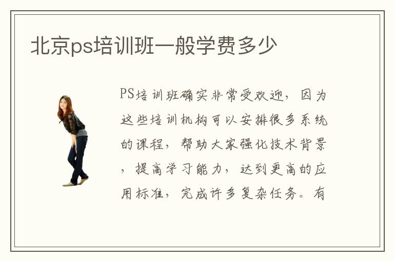 PS培訓班確實非常受歡迎,因為這些培訓機構(gòu)可以安排很多系統(tǒng)的課程,幫助大家強化技術(shù)背景,提高學習能力,達到更高的應用標準,完成許多復雜任務(wù)。有些同學很想學ps的課程,工作中有很好的發(fā)揮,報名這些輔導班便是理想的選擇,大家可以在培訓班中掌握這些內(nèi)容,從而取得顯著的收獲。北京ps培訓ps培訓班一般學費多少,PS培訓班的費用可能是4000~1萬元,其實同學報名的課程難度,學校類型等等都不同,學費存在很多變化。有些學校綜合水平高,專業(yè)能力強,培訓思路很清晰,學生的進度也特別快。ps培訓班口碑很不錯,許多學生短期內(nèi)都能掌握ps的課程,也能取得工作優(yōu)勢。ps可不可以自學,PS自學難度較低,但仍然存在少部分課程需要同學反復練習,大家不可掉以輕心。