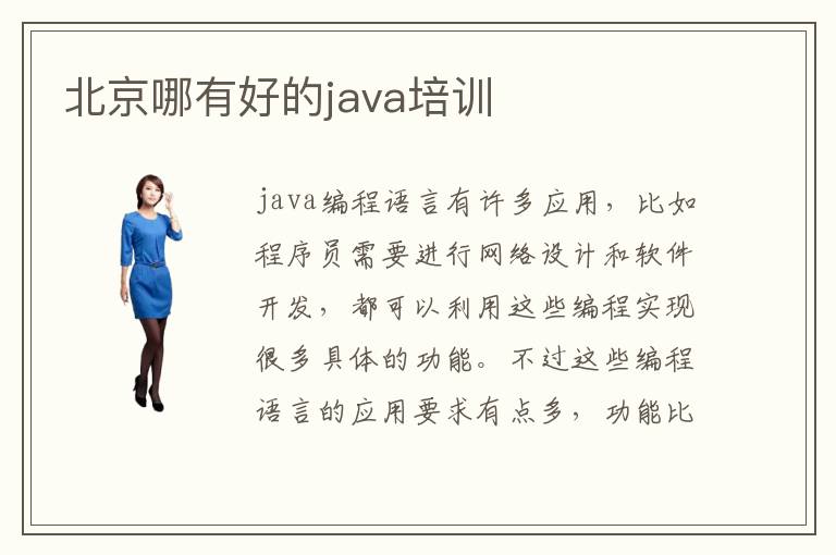 java編程語言有許多應(yīng)用,比如程序員需要進行網(wǎng)絡(luò)設(shè)計和軟件開發(fā),都可以利用這些編程實現(xiàn)很多具體的功能。不過這些編程語言的應(yīng)用要求有點多,功能比較復(fù)雜,學(xué)生要反復(fù)練習(xí),達到比較高的學(xué)習(xí)效果。要是同學(xué)很想快點提高應(yīng)用能力,都可報名輔導(dǎo)機構(gòu),得到更多進展。北京哪有好的java培訓(xùn),學(xué)生在挑選java培訓(xùn)班時,要關(guān)注培訓(xùn)班的綜合能力、教學(xué)的方式、培訓(xùn)質(zhì)量。有些培訓(xùn)班的教學(xué)的速度快,培訓(xùn)能力很強,結(jié)合同學(xué)的能力安排不同難度的教學(xué)課程,同學(xué)會有比較大的改進。java培訓(xùn)學(xué)校的就業(yè)率很高,有些培訓(xùn)機構(gòu)每年都能達到99%以上的就業(yè)率,原因在于培訓(xùn)班很重視java應(yīng)用技術(shù),也會將大量工作要求進行詳細的分析,讓同學(xué)在上崗之前就能達到工作標準。