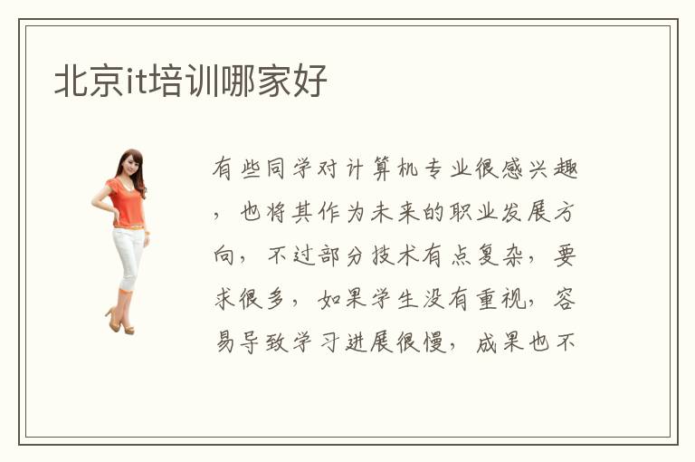 有些同學(xué)對(duì)計(jì)算機(jī)專業(yè)很感興趣,也將其作為未來(lái)的職業(yè)發(fā)展方向,不過(guò)部分技術(shù)有點(diǎn)復(fù)雜,要求很多,如果學(xué)生沒(méi)有重視,容易導(dǎo)致學(xué)習(xí)進(jìn)展很慢,成果也不太明顯。所以大家要謹(jǐn)慎學(xué)習(xí),了解真正的學(xué)習(xí)方法,由專業(yè)老師安排課程,效率就會(huì)高很多。大家在挑選培訓(xùn)班時(shí),要看清楚北京it培訓(xùn)哪家好,因?yàn)?a href="/it/detail10559.html">it培訓(xùn)機(jī)構(gòu)的類型五花八門(mén),教學(xué)質(zhì)量參差不齊。學(xué)生不小心選一些劣質(zhì)的it機(jī)構(gòu),學(xué)習(xí)成果會(huì)非常糟糕。it培訓(xùn)班網(wǎng)絡(luò)教學(xué)作用很明顯,昨天同學(xué)在家學(xué)習(xí),也能夠完成多重要的課程。在上課的時(shí)候,大家可以在互聯(lián)網(wǎng)上交流,分享許多學(xué)習(xí)經(jīng)驗(yàn)。it前景怎么樣,計(jì)算機(jī)專業(yè)的前景非常開(kāi)闊,因?yàn)橛?jì)算機(jī)技術(shù)越來(lái)越普及,信息產(chǎn)業(yè)越來(lái)越規(guī)模化,所以技術(shù)人才越來(lái)越緊缺。