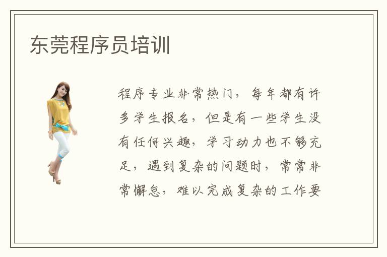 程序?qū)I(yè)非常熱門,每年都有許多學生報名,但是有一些學生沒有任何興趣,學習動力也不夠充足,遇到復雜的問題時,常常非常懈怠,難以完成復雜的工作要求。要想快速提高程序應用能力,成為一名優(yōu)秀的程序員,學生還可以參加東莞程序員培訓,事先掌握各種應用的要求,然后再慢慢提高個人的應用能力,從而在工作崗位上得到更多的優(yōu)勢。程序課程有哪些,程序?qū)I(yè)的同學需要掌握很多課程,其中比較重要的有程序設計、程序開發(fā)、網(wǎng)絡功能、服務、基本的數(shù)據(jù)結(jié)構(gòu)、數(shù)據(jù)分析等等。對一些基礎(chǔ)不太好的同學來說,感覺這些課程會比較難,但是只要掌握一些基本的學習方法,效率會有很高的保障。程序培訓班的作用在于幫助大家化解難題,減少學習的負擔,提高學習的速度。