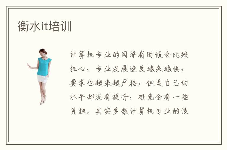 計算機專業(yè)的同學有時候會比較擔心,專業(yè)發(fā)展速度越來越快,要求也越來越嚴格,但是自己的水平卻沒有提升,難免會有一些負擔。其實多數(shù)計算機專業(yè)的技術(shù)人員都有類似的困擾,不過不必擔心,可以找到高品質(zhì)的衡水it培訓學校老師會安排許多前沿的it技術(shù)課程,適當調(diào)整學習的方法和思路,明確學習目標,使得學生有能力高效完成各種復雜的技術(shù)任務。it課程的學費可能是8000~2萬元之間,但具體的學費是不同的,主要原因是學習目標和學習課程都不一樣,費用會有一定的變化。it有什么課程,計算機專業(yè)的課程有網(wǎng)絡技術(shù)、編程語言、計算機組裝與維修、計算機安全高級技術(shù)、操作系統(tǒng)局域網(wǎng)組件、操作服務器系統(tǒng)等等。大家的工作要求不一樣,課程也會有差別。