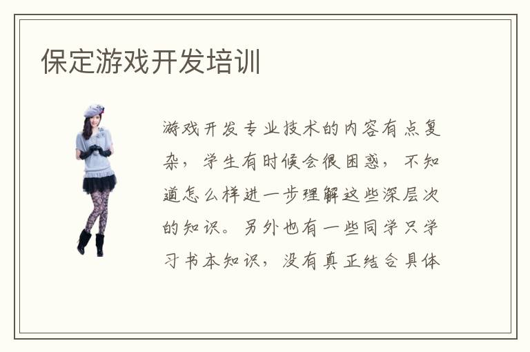 游戲開發(fā)專業(yè)技術(shù)的內(nèi)容有點(diǎn)復(fù)雜,學(xué)生有時(shí)候會(huì)很困惑,不知道怎么樣進(jìn)一步理解這些深層次的知識(shí)。另外也有一些同學(xué)只學(xué)習(xí)書本知識(shí),沒有真正結(jié)合具體實(shí)踐應(yīng)用,進(jìn)行專項(xiàng)的訓(xùn)練或者缺乏專業(yè)設(shè)施,達(dá)不到應(yīng)用的標(biāo)準(zhǔn),難免會(huì)有非常多學(xué)習(xí)障礙。為了學(xué)習(xí)更多深層的軟件測(cè)試知識(shí),學(xué)生可以選擇保定游戲開發(fā)培訓(xùn)學(xué)校,老師可以培養(yǎng)同學(xué)的興趣,激發(fā)學(xué)生的動(dòng)力,進(jìn)一步介紹深層的專業(yè)技術(shù)課程,使同學(xué)的學(xué)習(xí)成果更為理想。游戲開發(fā)一對(duì)一課程有非常明顯的作用,首先學(xué)生可以選擇一些基礎(chǔ)性的課程,鞏固好自己的知識(shí)結(jié)構(gòu),然后再選擇更高難度的技術(shù)課程。游戲開發(fā)就業(yè)簡單嗎,游戲開發(fā)的就業(yè)難度不算大,因?yàn)榇蠹耶厴I(yè)之后,只要掌握一定的技術(shù),都能找到滿意工作,將來的發(fā)展前景也更開闊。