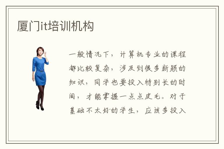 一般情況下,計算機專業(yè)的課程都比較復雜,涉及到很多新穎的知識,同學也要投入特別長的時間,才能掌握一點點皮毛。對于基礎不太好的學生,應該多投入時間找到合適的學習方案,反復練習,達到比較高的標準。如果在工作上暴露出缺點,應該要及時找到突破的方法,不可掉以輕心。不少同學覺得自學能力特別差,所以會選擇廈門it培訓it培訓機構(gòu)的課程,爭取獲得更多優(yōu)勢。it行業(yè)的前途很開闊,因為很多計算機專員的工資待遇都比較理想,有些技術人員剛剛起步,能獲得1萬到2萬的月收入,假如個人能力很強,而且發(fā)展空間會更開闊,待遇還會增加。it培訓機構(gòu)效果很不錯,實際上就是老師會把重要的學習思路和方案介紹給大家,制定明確的目標,確保每個階段都可以看到進步。