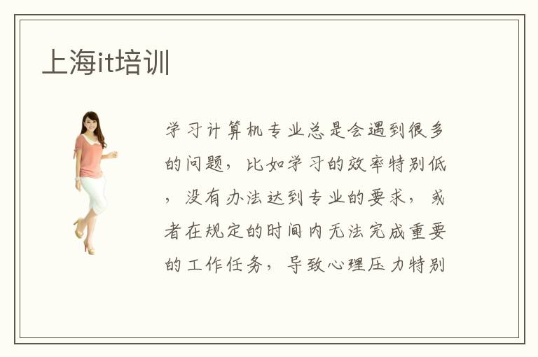 學(xué)習(xí)計算機專業(yè)總是會遇到很多的問題,比如學(xué)習(xí)的效率特別低,沒有辦法達(dá)到專業(yè)的要求,或者在規(guī)定的時間內(nèi)無法完成重要的工作任務(wù),導(dǎo)致心理壓力特別大,甚至存在很多負(fù)面情緒。若大家有一些學(xué)習(xí)方面的困惑,可以參加上海it培訓(xùn),專業(yè)的輔導(dǎo)老師都會幫助大家化解各種各樣的學(xué)習(xí)挑戰(zhàn),也會克服各種學(xué)習(xí)的障礙,使大家的學(xué)習(xí)成果都非常理想。一部分學(xué)生對計算機專業(yè)的業(yè)務(wù)要求理解并不是很充分,而且專業(yè)的學(xué)習(xí)思路不夠活躍,影響學(xué)習(xí)的狀態(tài)和效率。而選擇輔導(dǎo)班it教程之后,就不用擔(dān)心類似的狀況。it小班輔導(dǎo)確實有很好的效果,不少同學(xué)的成績都很差,學(xué)習(xí)能力不強,很難提高個人的競爭水平,而老師會也會及時找到問題所在,然后通過有效的方式處理。