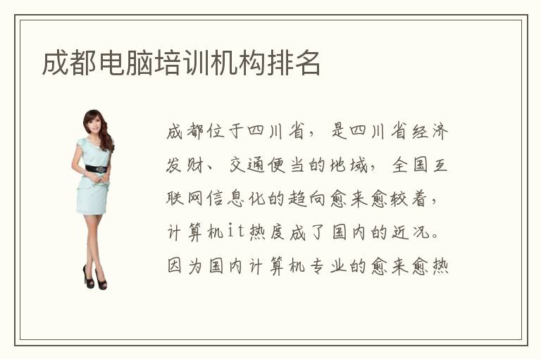 成都位于四川省,是四川省經(jīng)濟發(fā)財、交通便當(dāng)?shù)牡赜?,全國互?lián)網(wǎng)信息化的趨向愈來愈較著,計算機it熱度成了國內(nèi)的近況。因為國內(nèi)計算機專業(yè)的愈來愈熱門,是以學(xué)習(xí)it技術(shù)的人也愈來愈多,成都地域關(guān)于計算機it技術(shù)型人材的培育也愈來愈重視。各大網(wǎng)站開始倡議成都計算機培訓(xùn)計算機培訓(xùn)機構(gòu)排名的投票活動評比,脹勵列位市平易近踴躍介入投票互動。成都計算機培訓(xùn)機構(gòu)排名推薦電腦學(xué)校