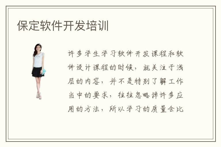 許多學生學習軟件開發(fā)課程和軟件設計課程的時候,就關注于淺層的內(nèi)容,并不是特別了解工作當中的要求,往往忽略掉許多應用的方法,所以學習的質量會比較低。不過有很多種方法可以改變,比如參加保定軟件開發(fā)培訓。大家可以先對比各種不同的培訓班,然后找到適合自己的課程,從而發(fā)揮出更為好的水平,得到更大的提升。軟件開發(fā)培訓有沒有優(yōu)勢,軟件開發(fā)輔導班的主要優(yōu)勢就是可以幫助大家找到許多不足之處,然后明確學習的重點和方向,為同學解答疑惑,而且同學一旦有任何關于軟件方面的不懂的問題,都可以馬上請教老師,從而解決各種難題。軟件開發(fā)網(wǎng)絡課程的優(yōu)勢相當多,無論是剛剛學習軟件專業(yè)的小白,還是已經(jīng)在行業(yè)中有多年經(jīng)驗的工作者,都可以報名這些課程。